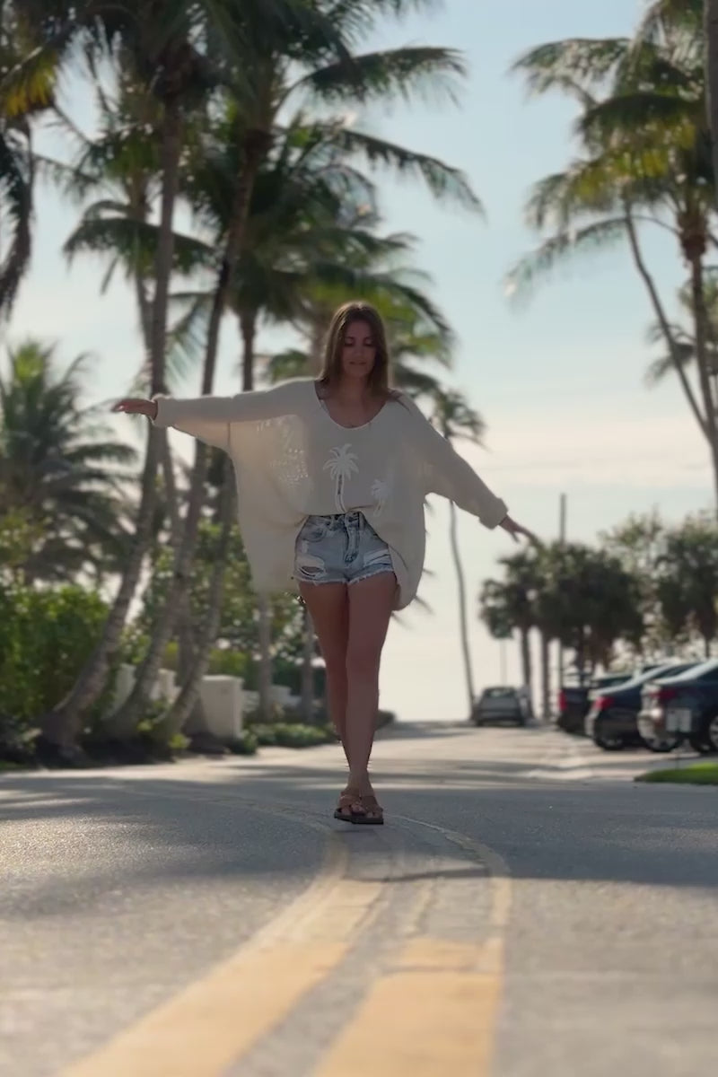 - Wear this luxe knit palm tree topper with your favorite white or vintage denim shorts and welcome the sun in style.