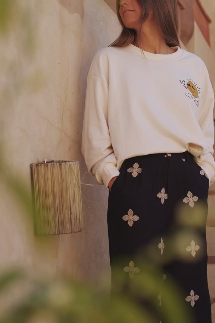 - Style these pull-on embroidered trouser pants with slouchy tees or chunky knit sweaters for a study in casual sophistica