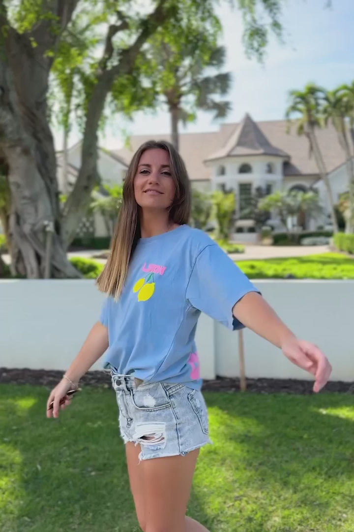 - Make everyday cool and sweet as lemonade in our Blue Jersey Knit Limoncello Tee.
