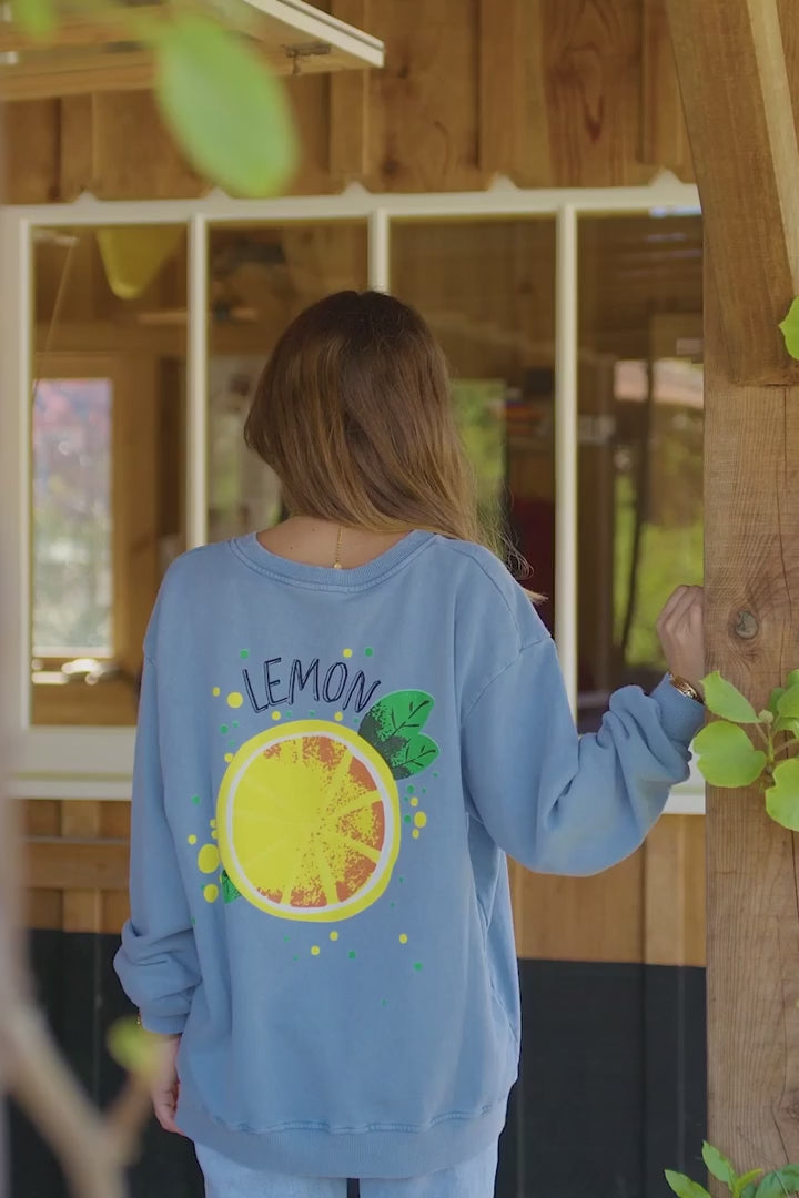 Blue Lemon Screen Print Sweater