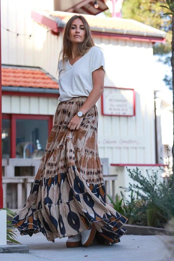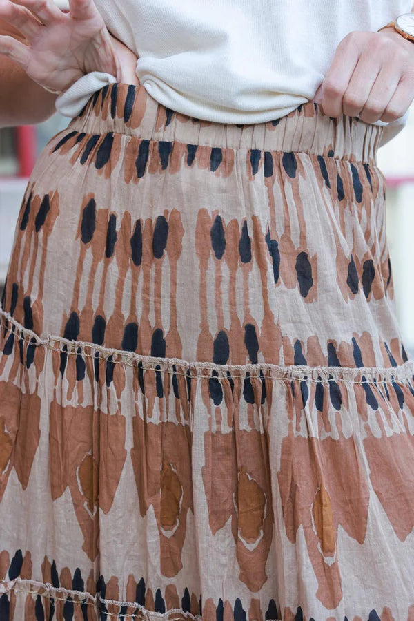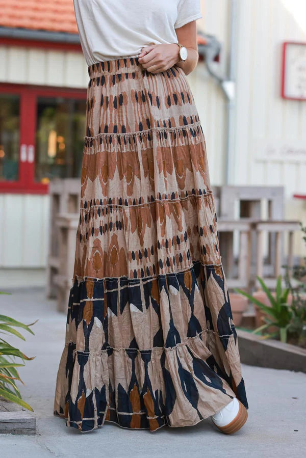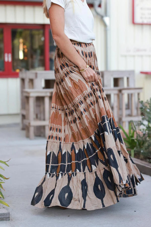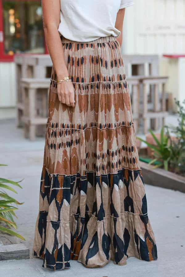 - Appeal to your inner Boho beauty in our Brown Batik Cotton Maxi Skirt.