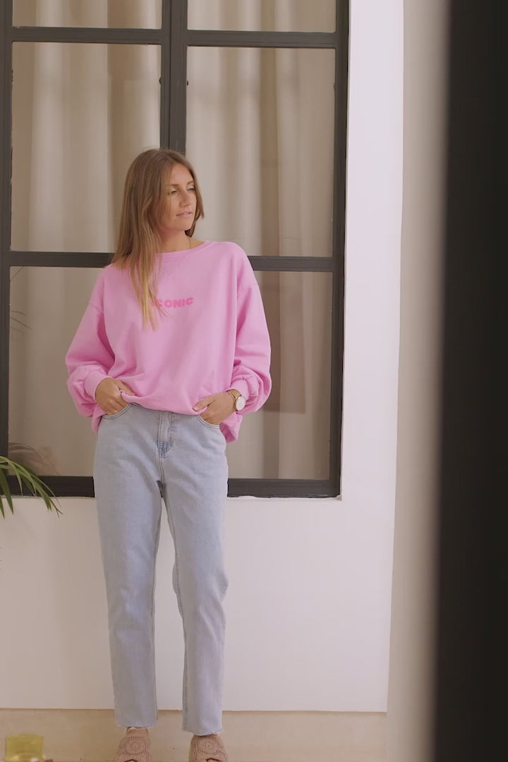 - Take your fabulous self on tour with our Light Pink Iconic Jersey Sweater.