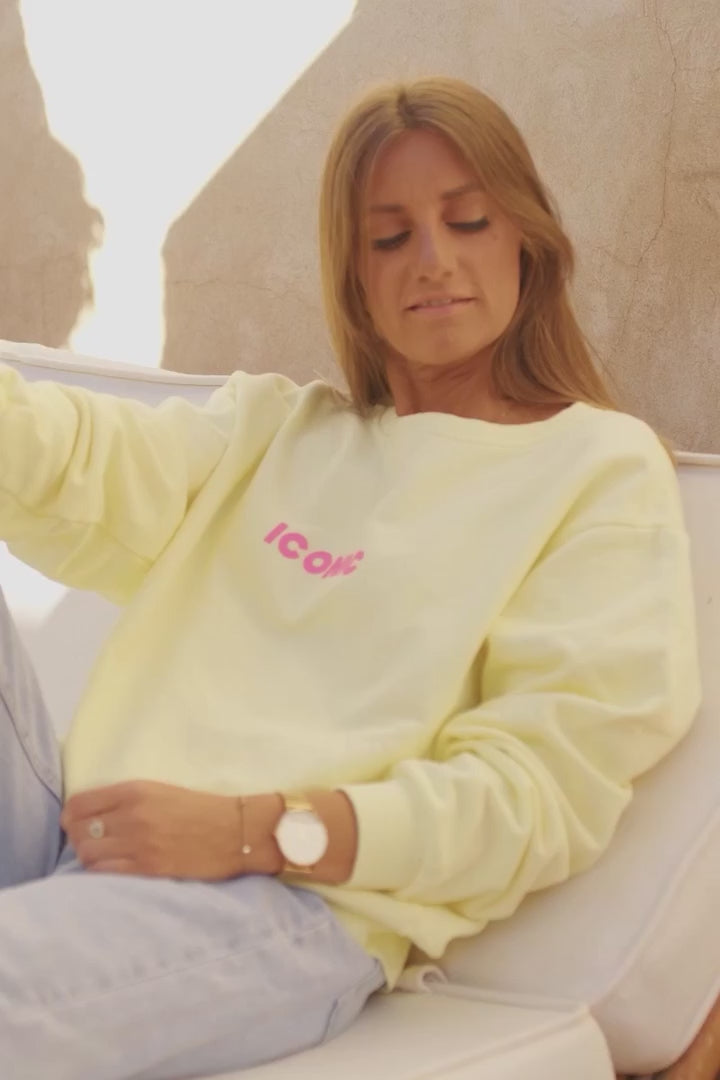 - Take your fabulous self on tour with our Butter Yellow Iconic Jersey Sweater.