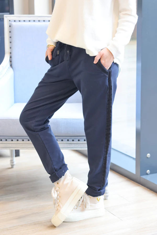 Navy Blue Sweatpants with Satin Outseams
