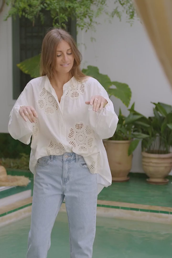 Off white Cotton Crochet Floral Inset Blouse