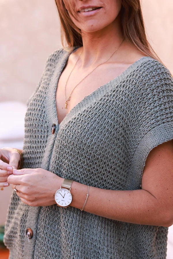 - Showcase your love of summer knits in our Olive Chunky Knit Cap-Sleeve Cardigan.