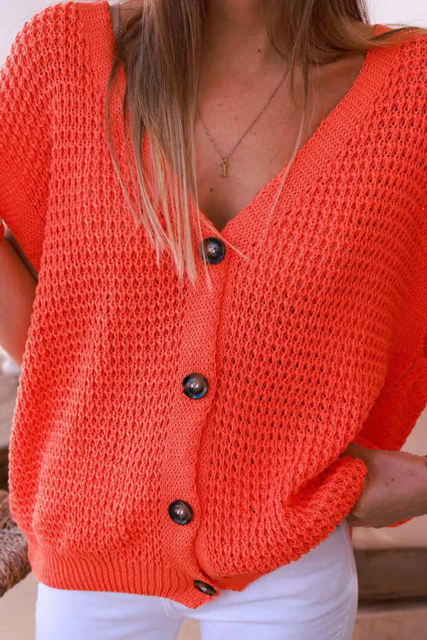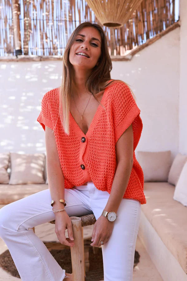- Showcase your love of summer knits in our Orange Chunky Knit Cap-Sleeve Cardigan.
