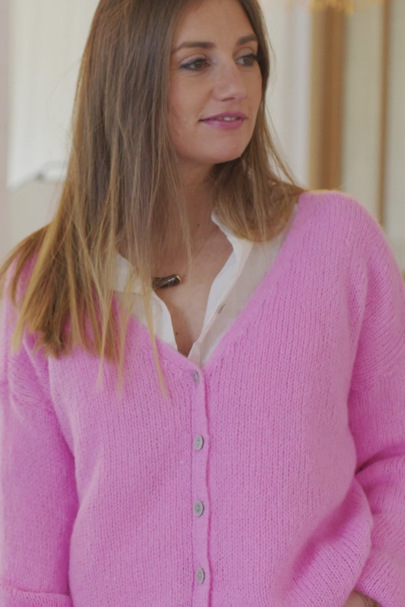 Pink Mother of Pearl Button through V-Neck Cardigan