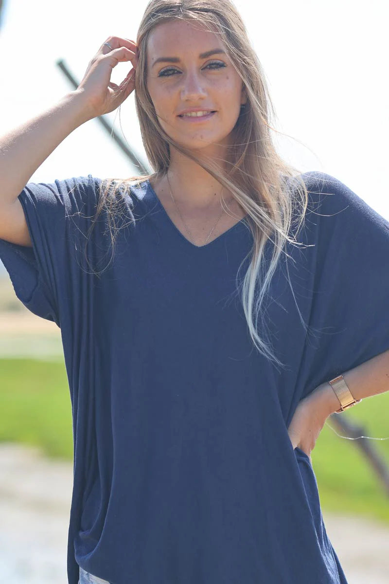 - There are rolled hems on the v-neckline as well as on the sleeves and bottom of the top.