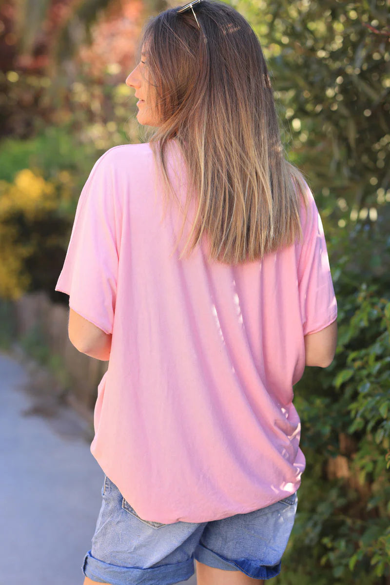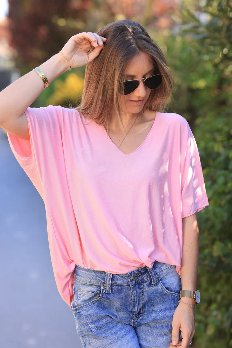 - There are rolled hems on the v-neckline as well as on the sleeves and bottom of the top.