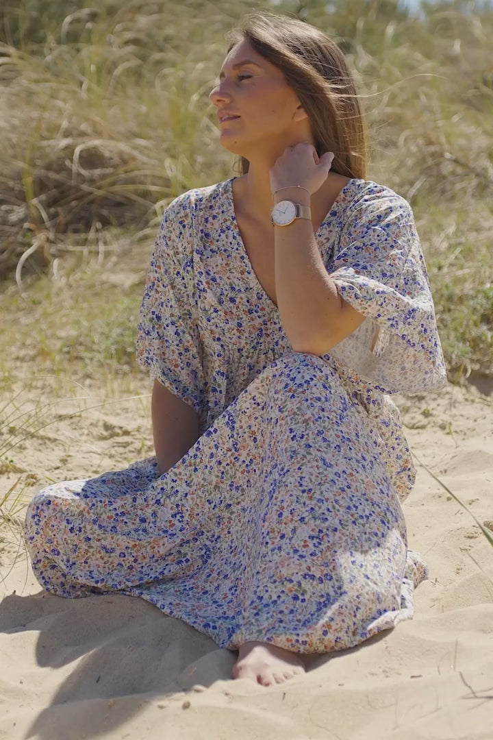 Royal blue Ditsy Floral V-Neck Butterfly Sleeve Maxi Dress