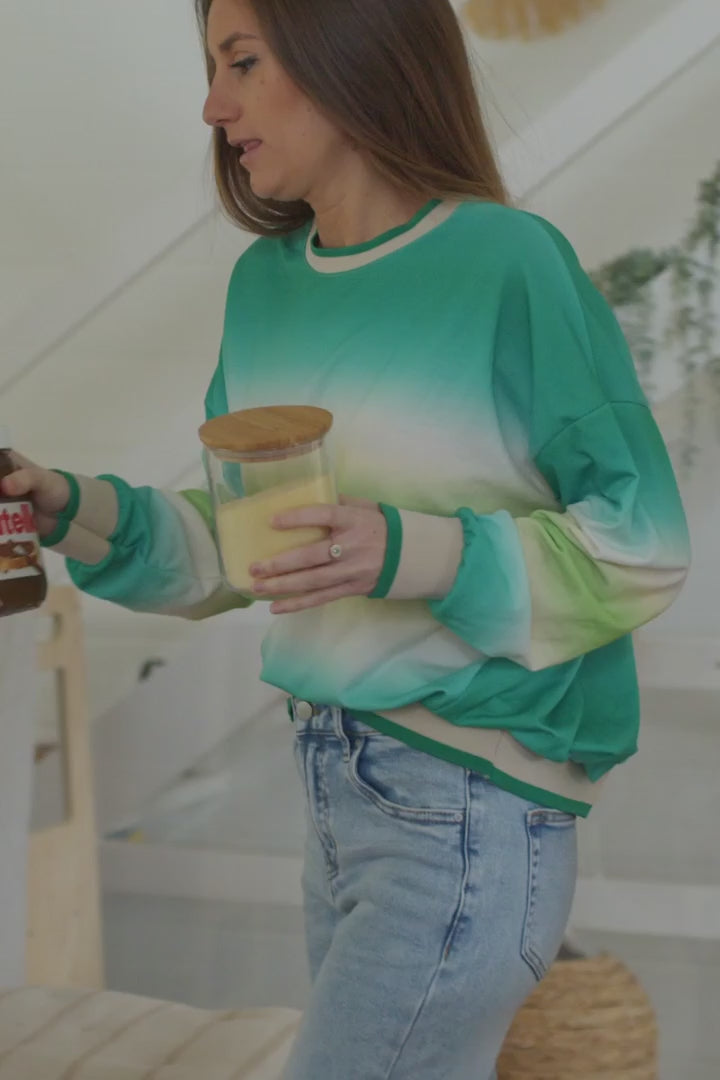- Turquoise, cream and lime green tie-dye stripe motif for a bright and beachy Boho look.
