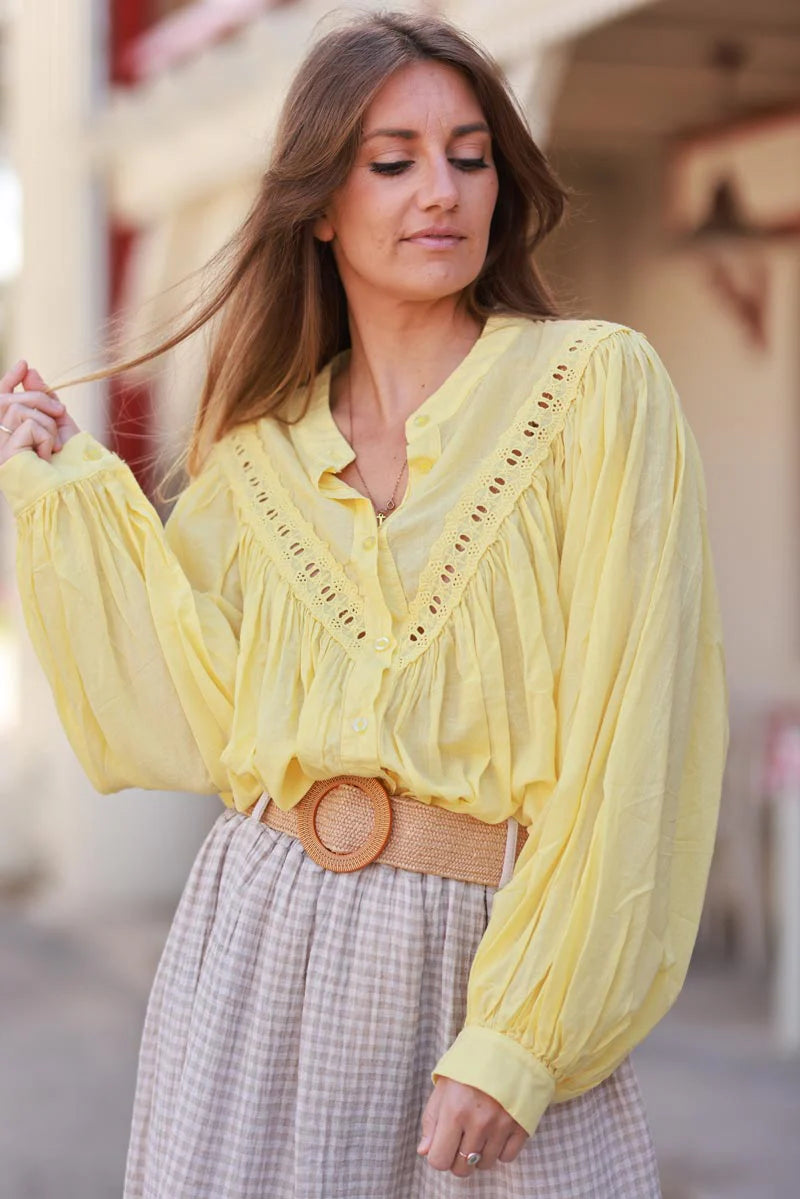 - Take a fashion cue from the Wild West in our Yellow Pleated Cotton Prairie Blouse.